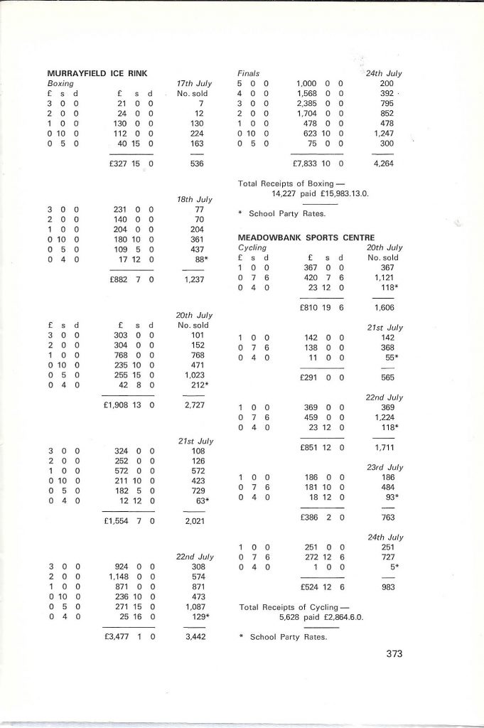 Among the really big differences between the Games of 1970 and those of the 21st century, is the difference in the money involved. What I have added here is the money taken at the various venues for the Games. It was of course possible to buy tickets for particular sports and particular days so that most of those attending were either involved in active participation in the sports or former participants or supporters. Anyway, below are the pages which deal with ‘takings’ at the various venues.