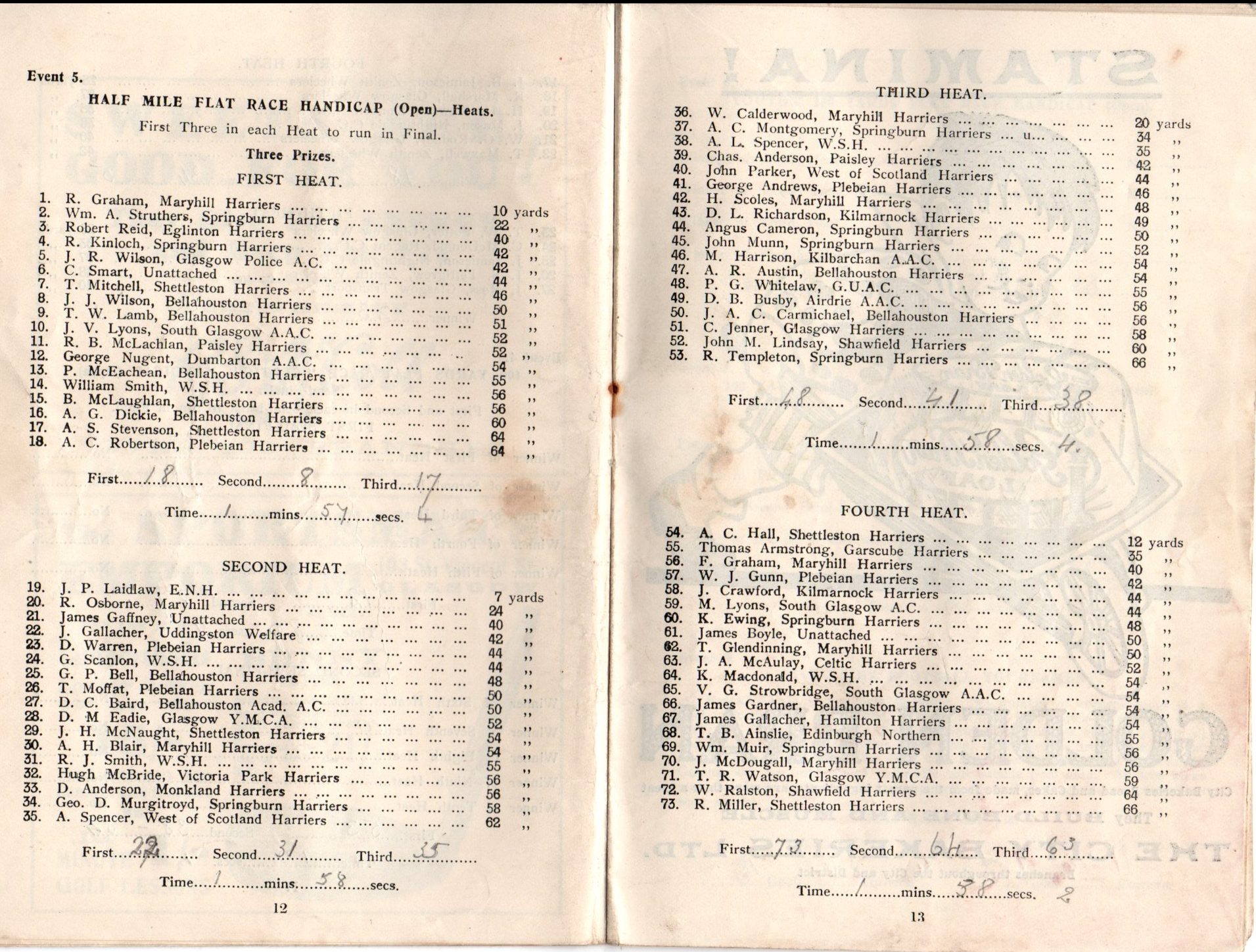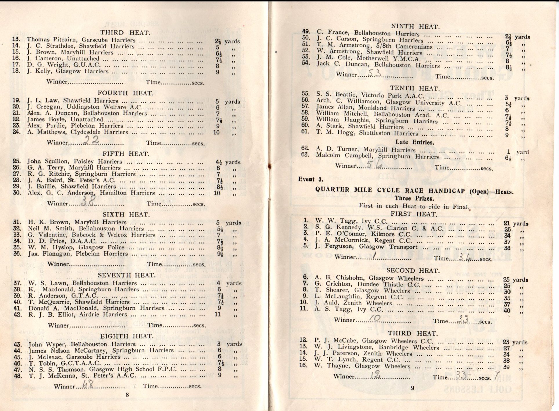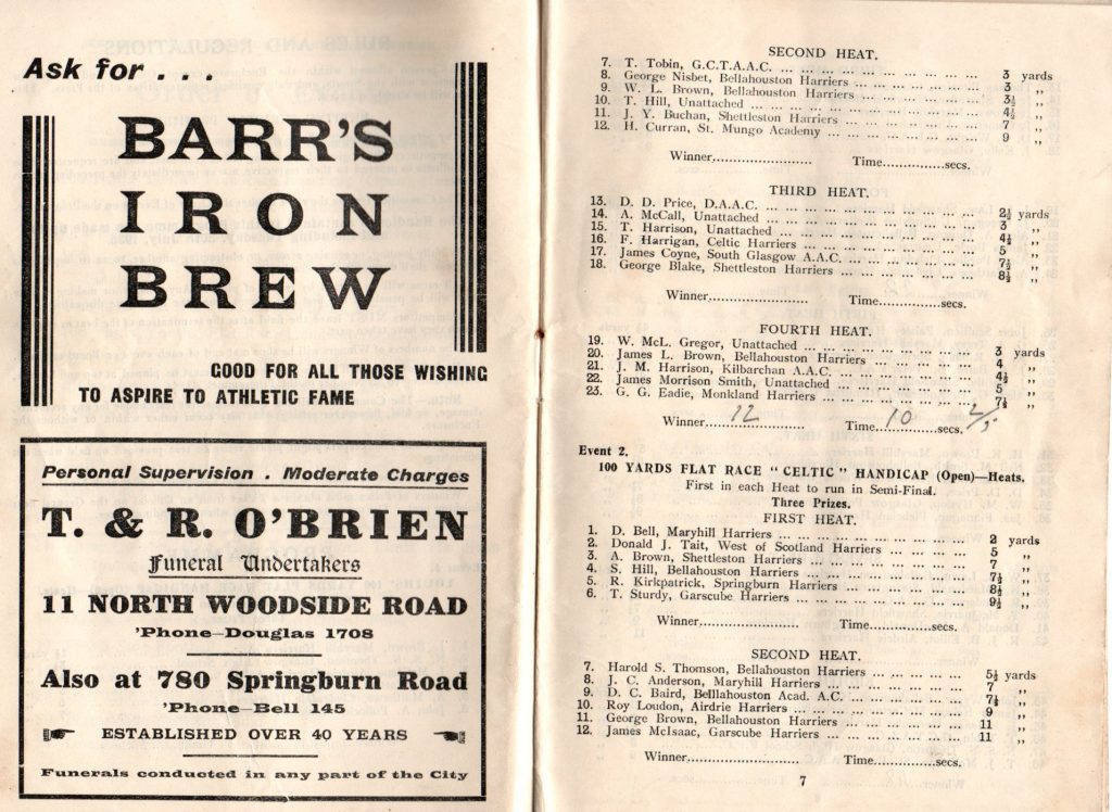 Celtic Sports ended in the late 1930’s simply because the football season started earlier than had been the practice and the earlier dates in the season were pretty well blocked in by established Sports such as Greenock Glenpark, Queen’s Park FC, the Rangers FC and so on. This programme was sent by John Mackay and it shows how well the sports were doing when they were brought to an unfortunate end.