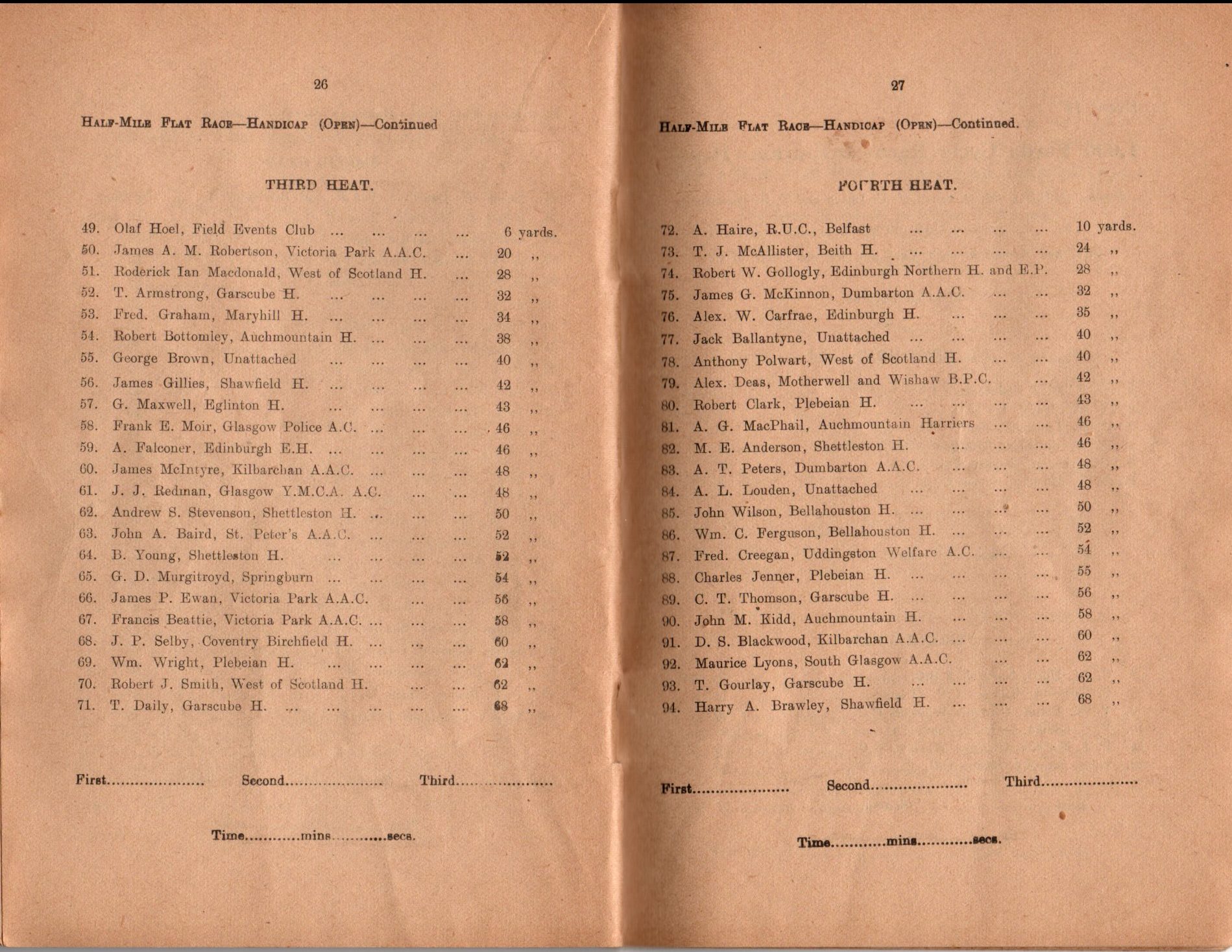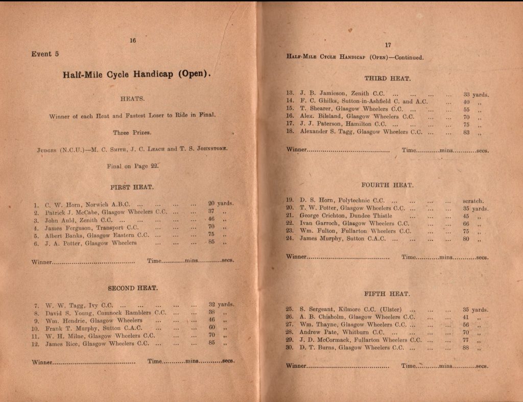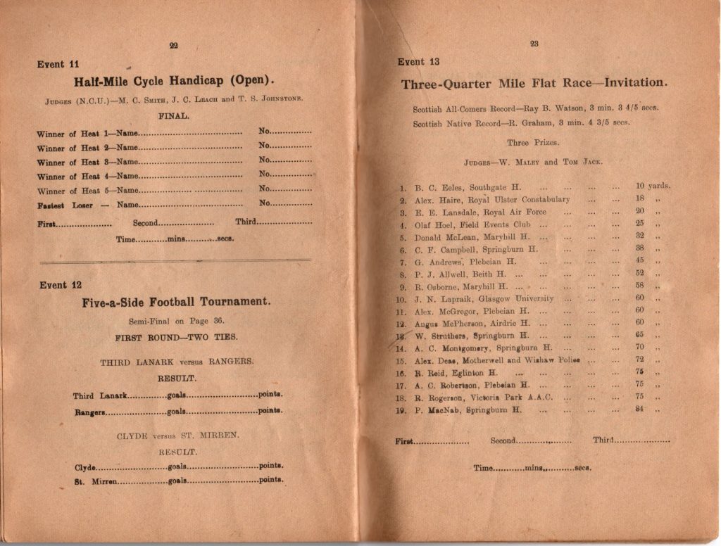 You will note from the large print in the middle of the cover that this was the 50th annual sports held by the club and it was a big occasion. One of the features was the large numbers of competitors – eg 145 entries in the Mile handicap! A lot for the back markers to wend their way thrpugh if they were going to do anything!