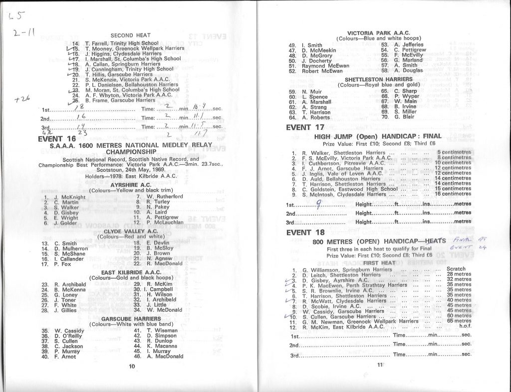 “A farcical SAAA National 1600m Medley Relay Championship was won, after an undistinguished race, by Garscube ‘B’ with only two clubs competing. More importance should be accorded to National titles by clubs such as Edinburgh Southern Harriers, Edinburgh AC, Shettleston, Victoria Park and Bellahouston etc – none of whom bothered to compete!”