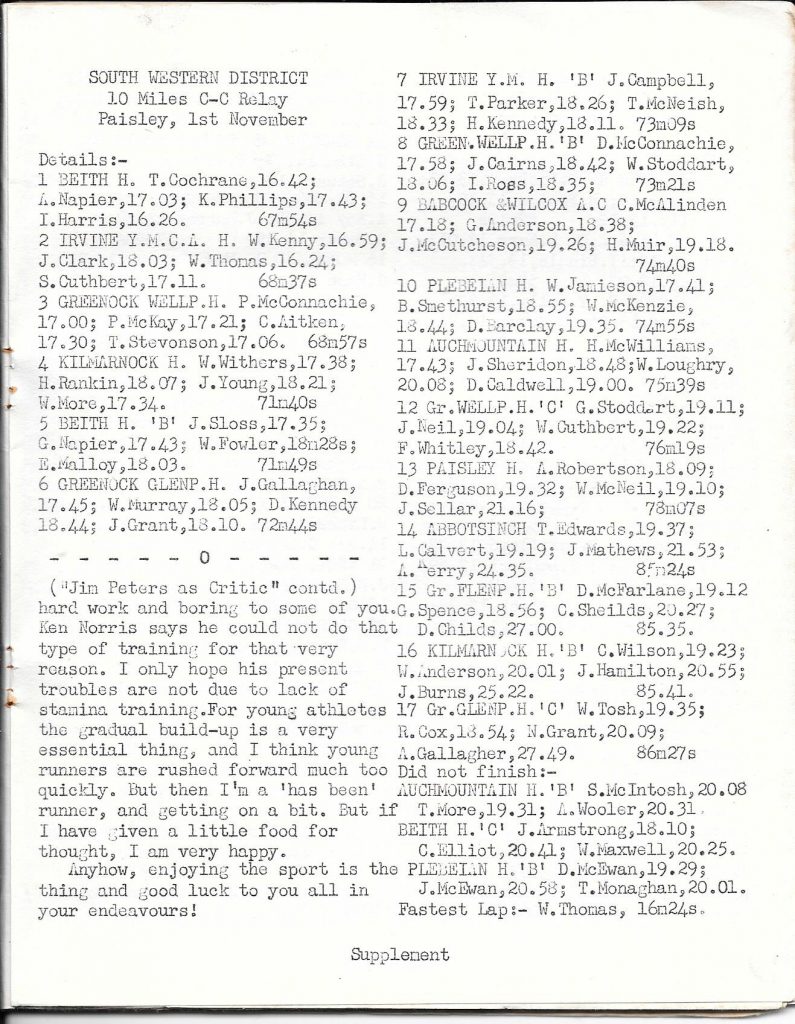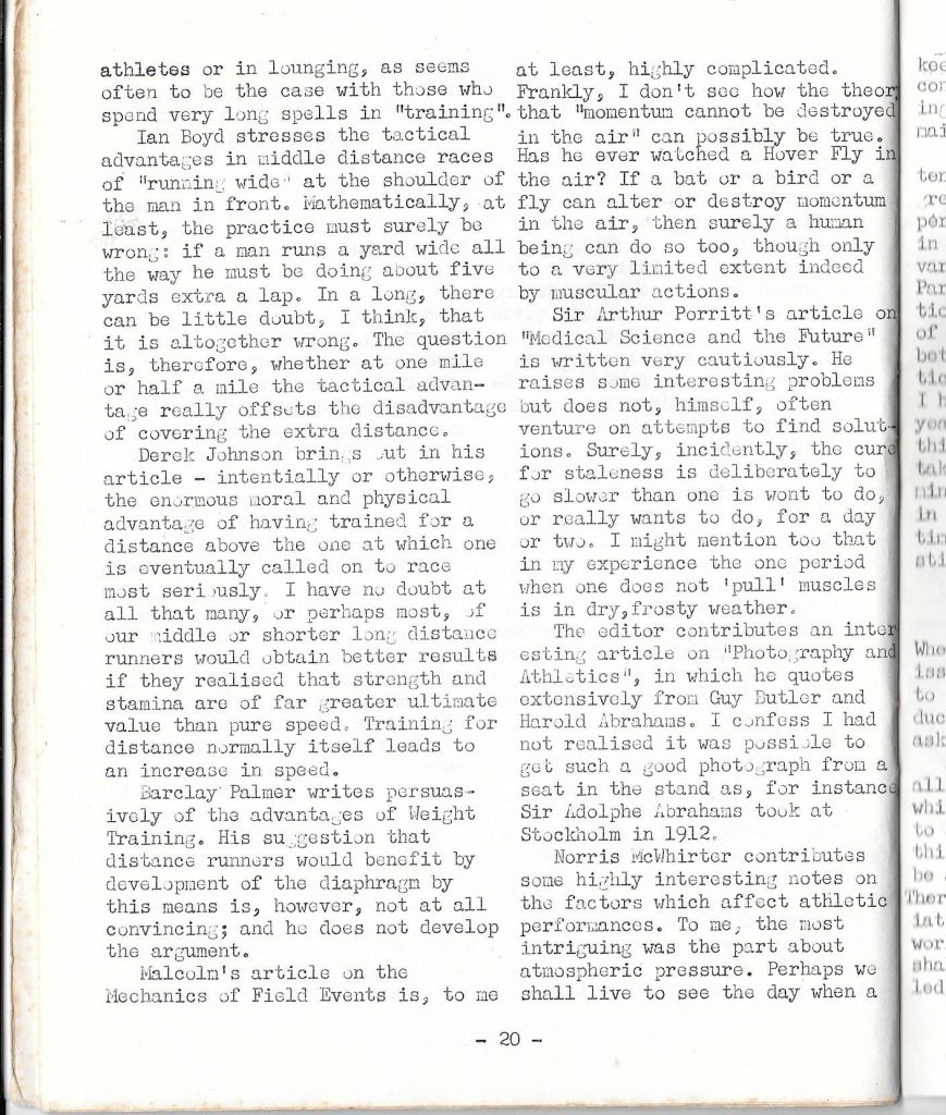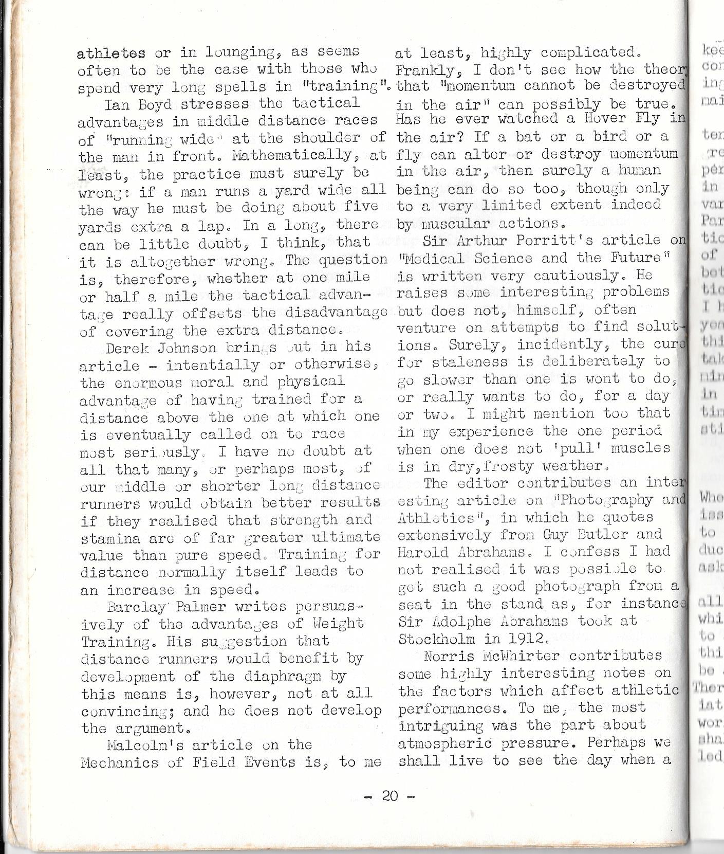 And that’s the magazine that Walter wanted to produce. It’s pretty well what Scotland needs in the 21st century. There are contributions from far and wide with regular contributions from Emmet Farrell and Brian Mitchell, book reviews, coaching information, a letters page and a supplement with Scottish results in it. The comment about Percy Cerutty suggesting the production of such an article in Walter’s own comments on p21 is an interesting one. Was Walter ahead of his time? Probably!